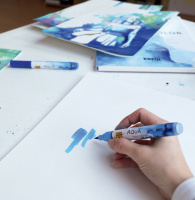 Momenty jsou zachyceny jako obrázky, kreslené a oživené vodou. Minimalistické výkresy dávají impuls našemu rychlému světu. SOLO GOYA Aqua Paint Marker značky KREUL charakterizuje kompaktní sortiment pro současné náčrty a malby s vodou rozpustnými barvami. Elastický štětcový hrot markeru milují umělci a kreativní lidé, používají je na cestách, v kavárně nebo doma snadno a bezstarostně.