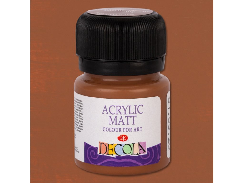 Akrylová matná barva Decola je vhodná na papír, lepenku, dřevo, kov, plátno atd. Je krycí, na vodní bázi, dobře mísitelná mezi sebou a rychle schnoucí. Barvy mají vysoký podíl pigmentů. Díky jejich hustotě jsou ideální na techniku Dot art. Po zaschnutí mají barvy matný vzhled.